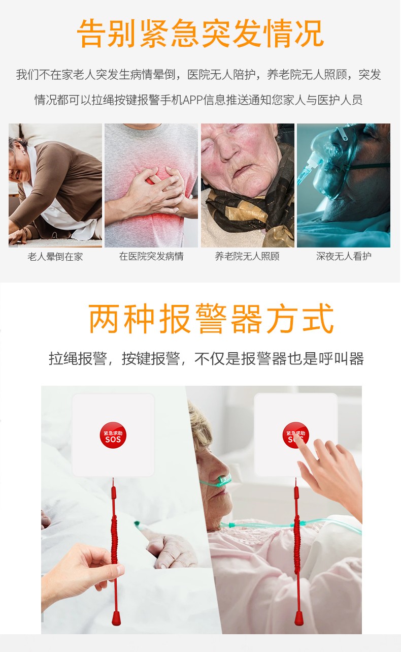 应用:适用于工厂、医院、小区和养老院等场所的紧急求助。